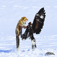 雌雕见此,也不再强迫他,自己和雄雕开始分吃剩下的兔肉。