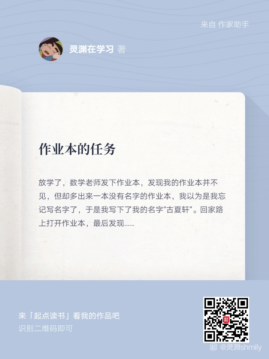 放学了,数学老师发下作业本,发现我的作业本并不见,但却多出来一本没有名字的作业本,我以为是我忘记写名字了,于是我写下了我的名字“古夏轩”。回家路上打开作业本,最后发现……
