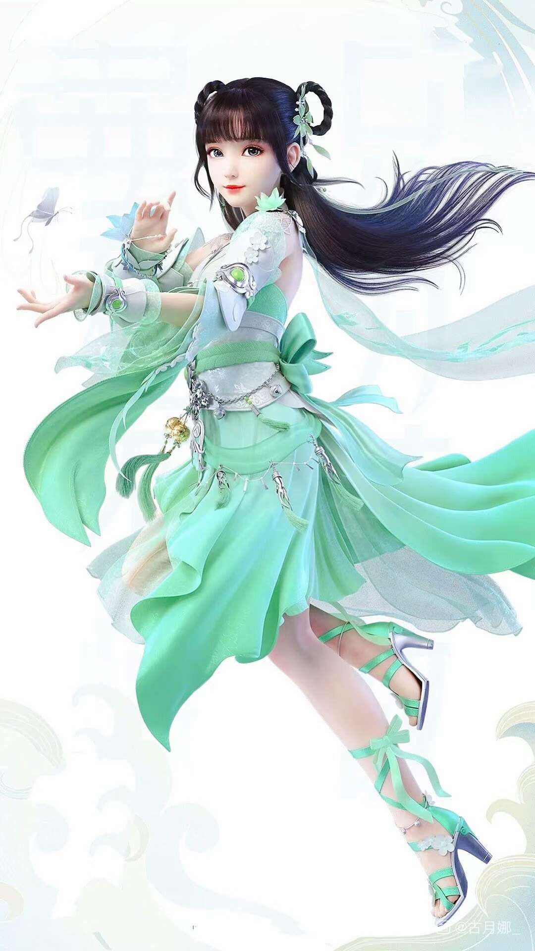 继续向下望去,则是少女那对修长白皙的美腿,若隐若现的绝对领域,不染一尘的玉足,无不让人大饱眼福,大呼过瘾。