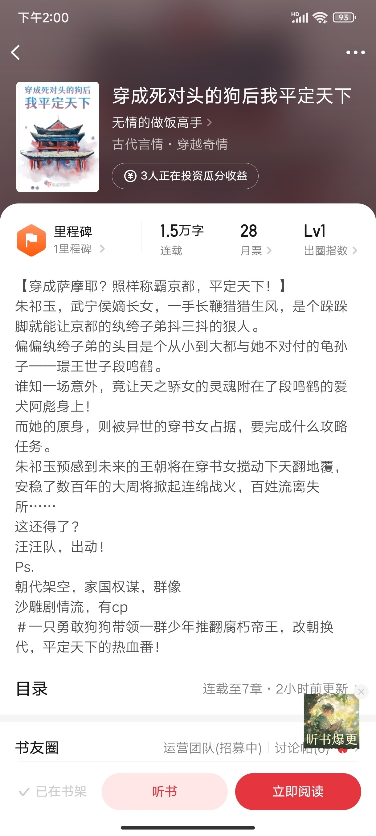 新文《穿成死对头的狗后我平定天下》继续女强大女主,走搞笑风,新书期宝宝们快来支持一下