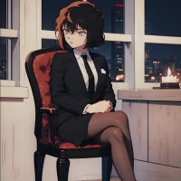 她优雅地蹲下身子,让自己能够平视他。接着她细细地打量着他脸上的每一处细节,接着展颜一笑。