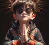 黑发,寸头,花棉袄,体型单薄,五官清秀,眼中有光。