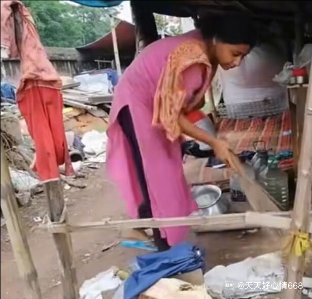 站在那位皮肤黝黑的男子身边,同样也是穿着莎丽、皮肤同样黝黑的女人赶紧道歉。