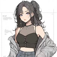 女孩穿着一个灰色的T恤,小码收腰,下身一条深蓝牛仔裤,十分贴合腿部弧线,裤腿在脚面张开,像是一朵简练优雅的小花。