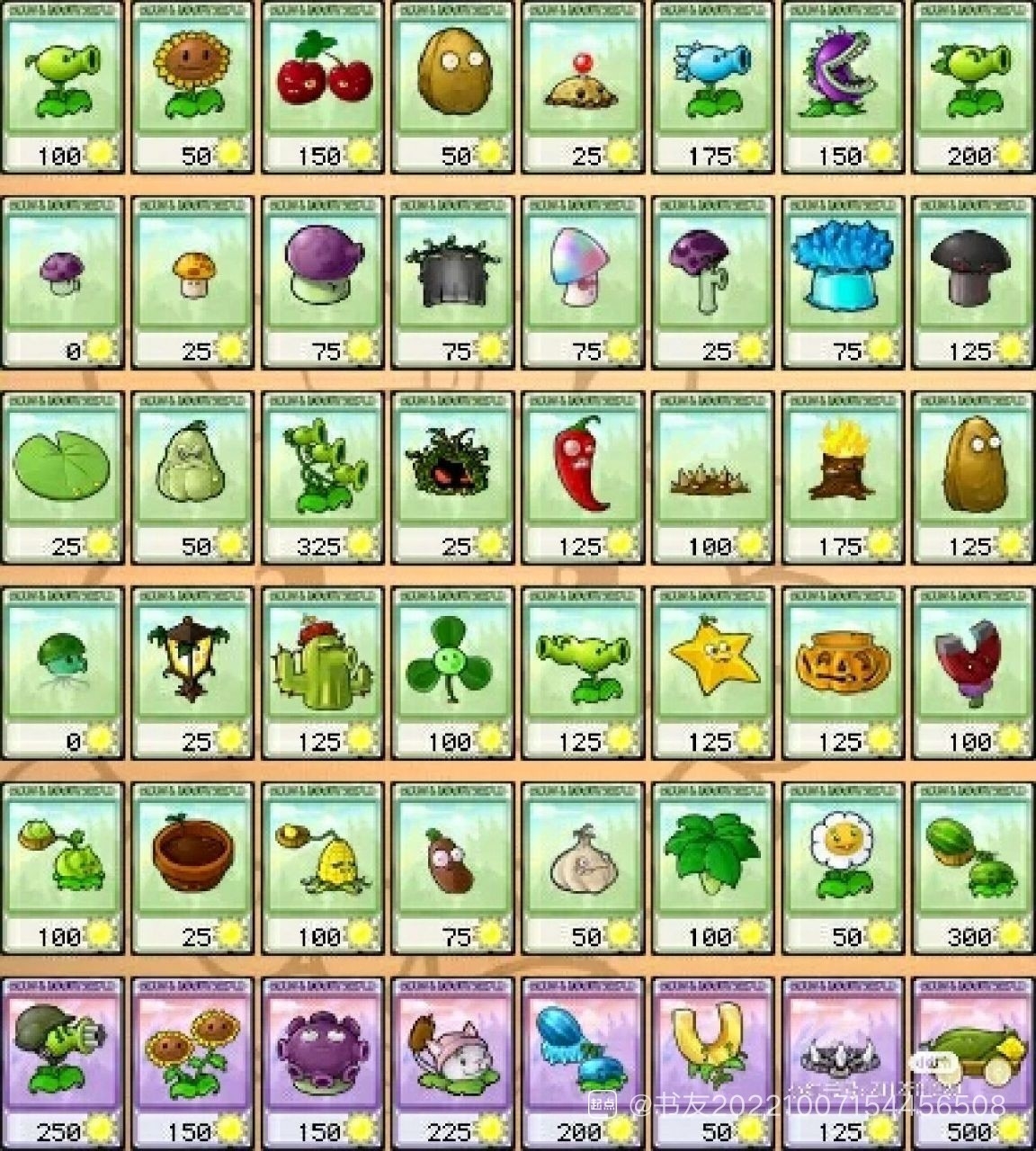 植物大战僵尸一代,杂交版的部分植物图鉴,会按图鉴慢慢把植物都些进去,还有我自己原创的一些杂交植物