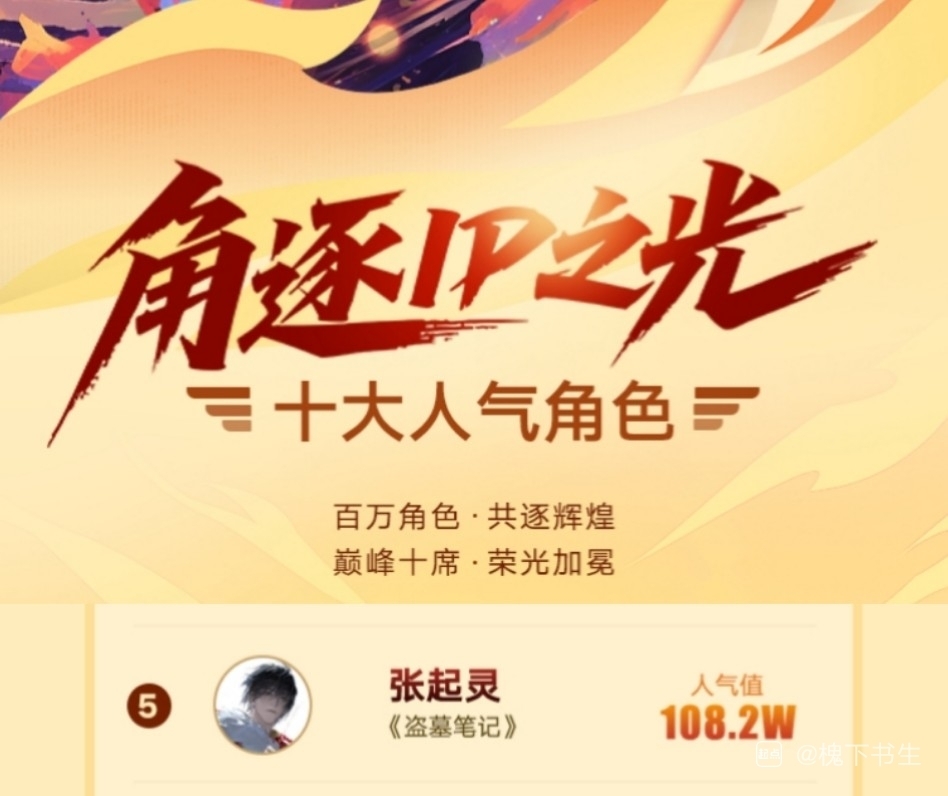 盗笔大本营也不在起点,这么多年被各种吸血,张起灵人气依旧能打到前五!感谢给张起灵打榜的宝宝们!辛苦啦!