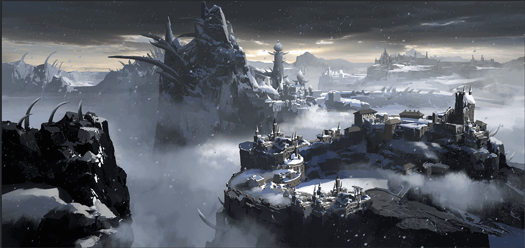 外形:巍峨恢弘的教堂里,每一根漆黑的柱子每一处拱券每一块穹顶都镶嵌着不同种族的白骨,它们密密麻麻极为混乱地挤在一起,用空洞的眼睛注视着大厅中央略显渺小的目标,就像在进行审判。簇拥着一个上百米的十字架。不显一点阴森反倒充满圣洁意味的尸骨教堂,教堂的墙壁、窗户、大门上,一张张透明扭曲的脸孔凸显了出来,似乎有数不清的魂灵被封印在了里面。